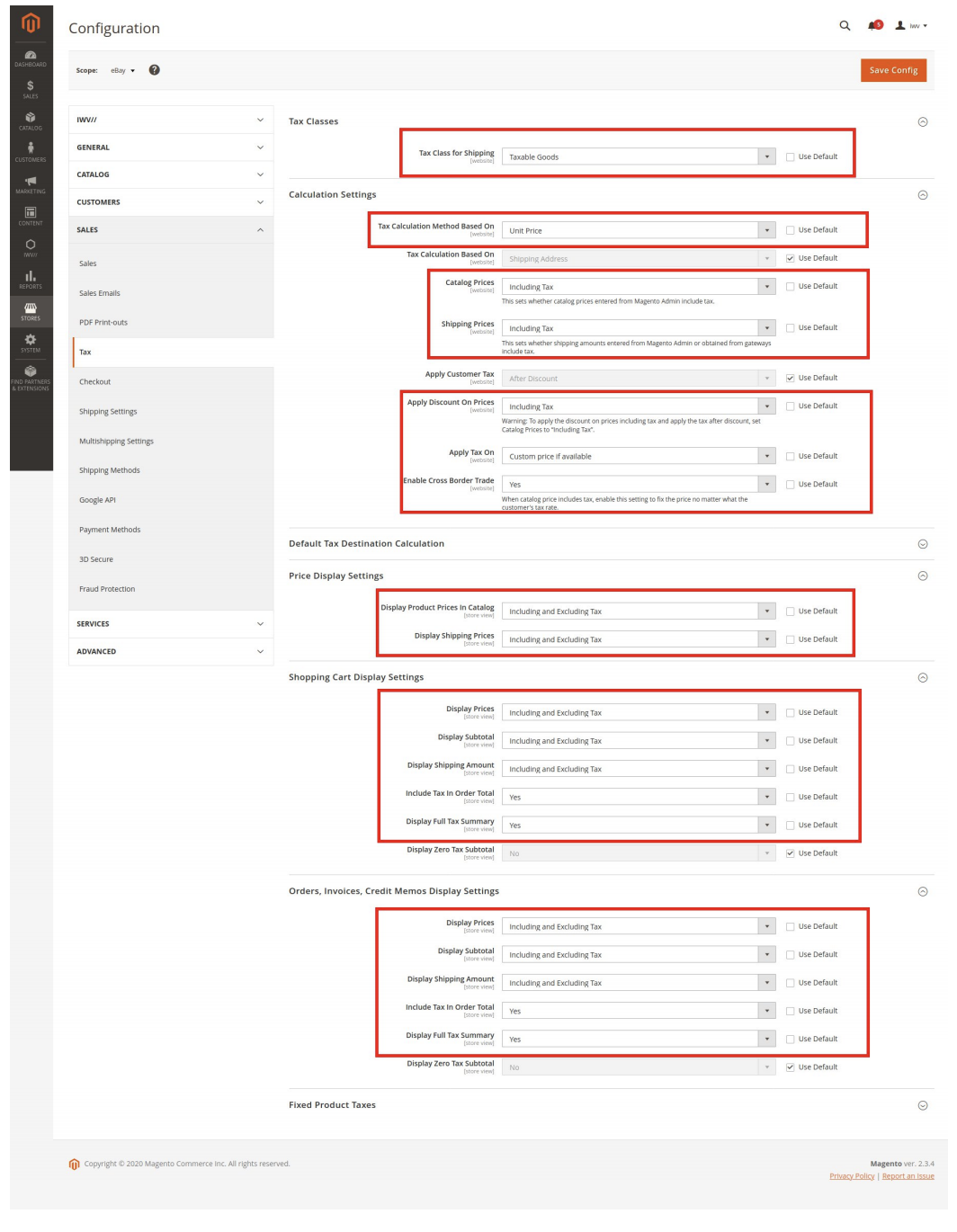 Configure eBay store Tax Calculation settings so that they are imported correctly