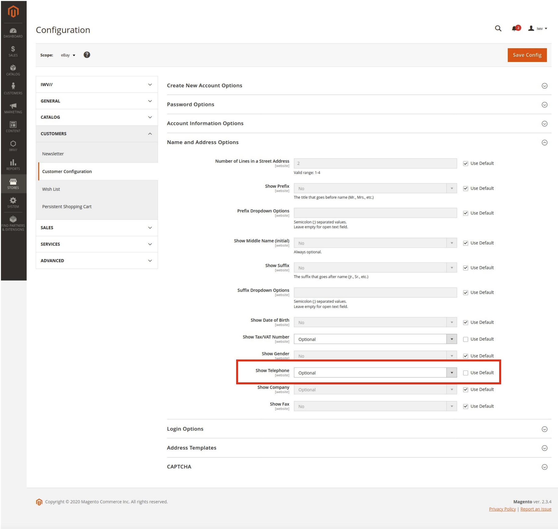 Set customer telephone option to Optional