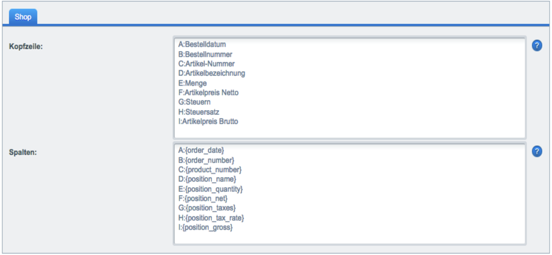 In der Konfiguration können Sie nun die Kopfzeile sowie deren Inhalte frei bestimmen.