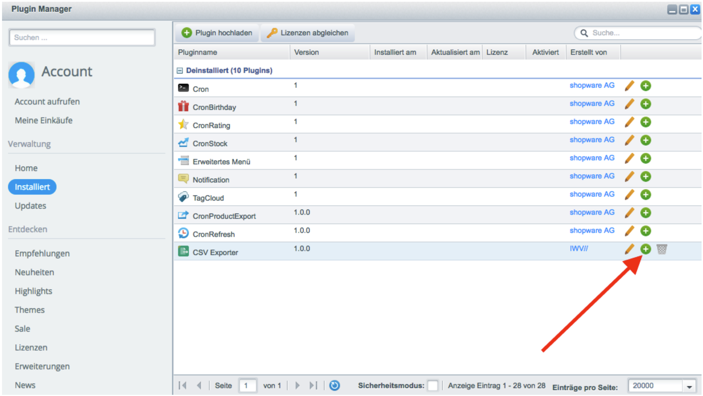 Rufe den "Plugin Manager" auf und klicken Sie auf das +.