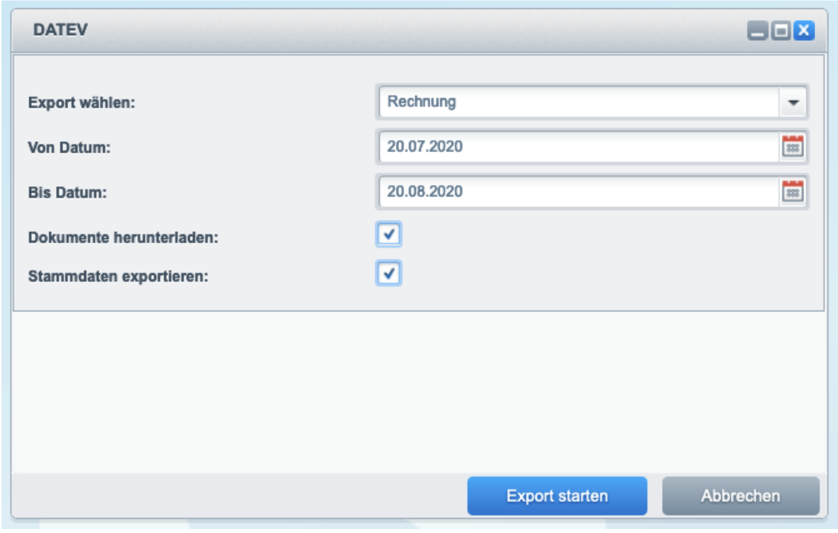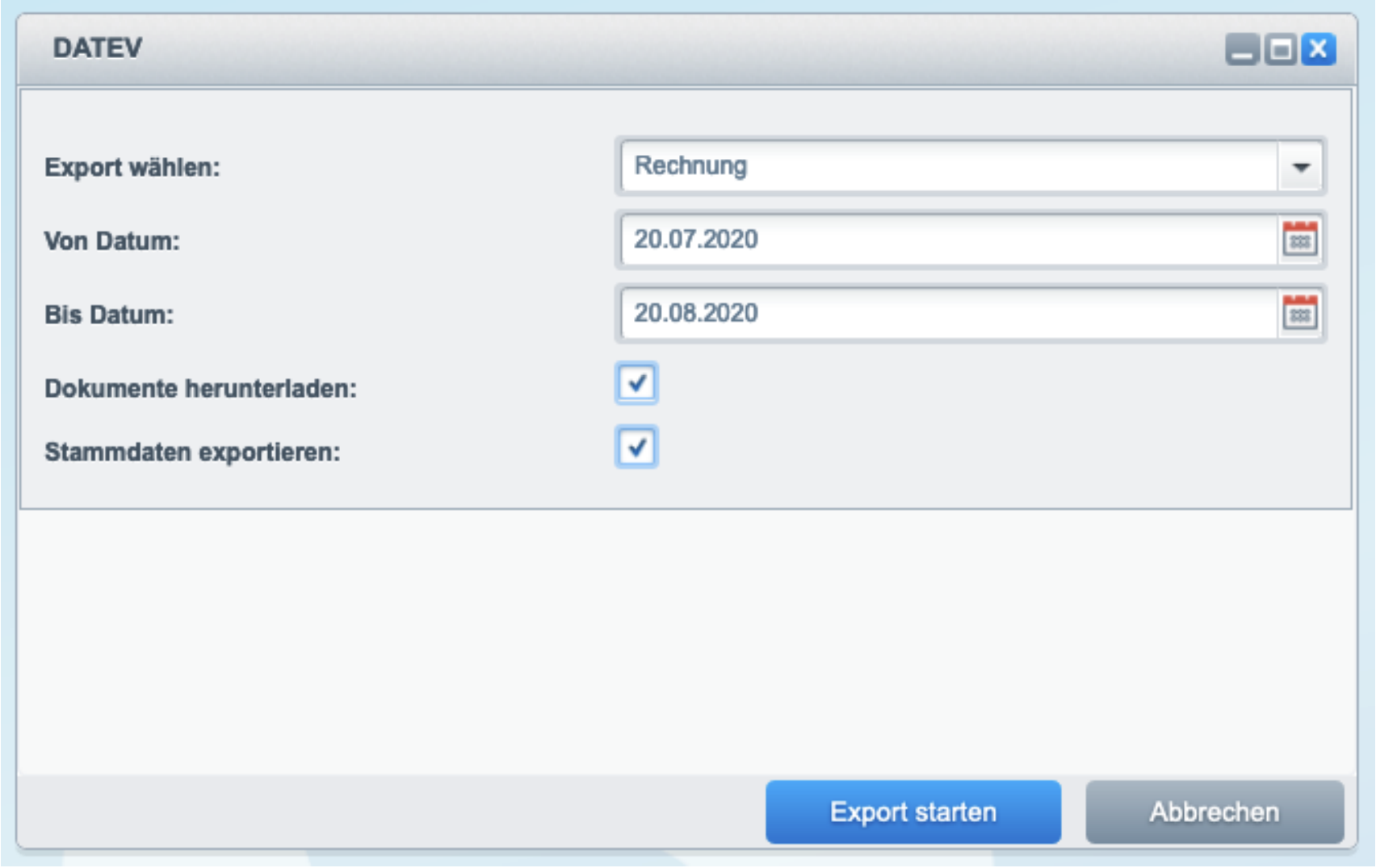 Wähle das Datum aus, für welches der DATEV-Export generiert werden soll.