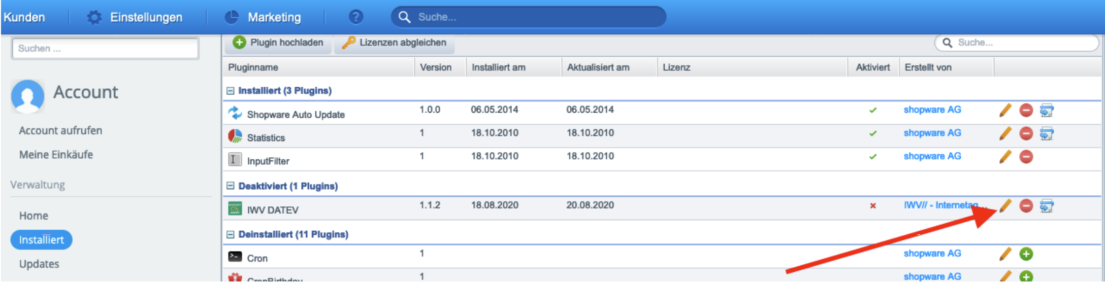 Klicke auf das Bleistift-Symbol, um das Fenster zur Aktivierung des Plugins zu öffnen.