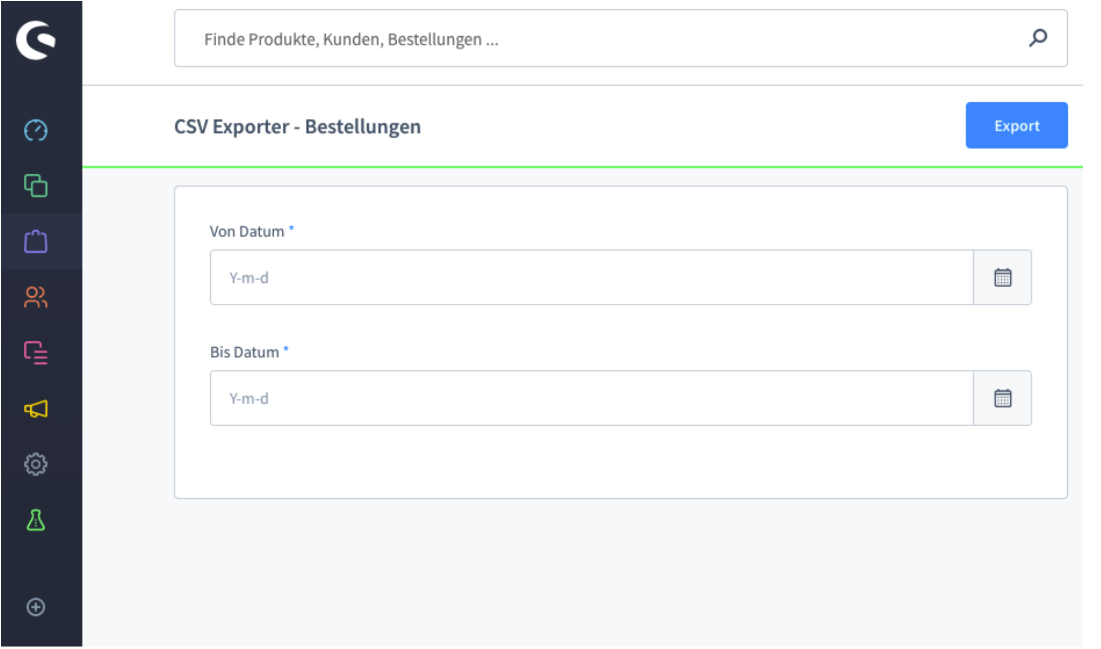 rufst Du den "CSV Exporter" unter Bestellungen → CSV Exporter auf.