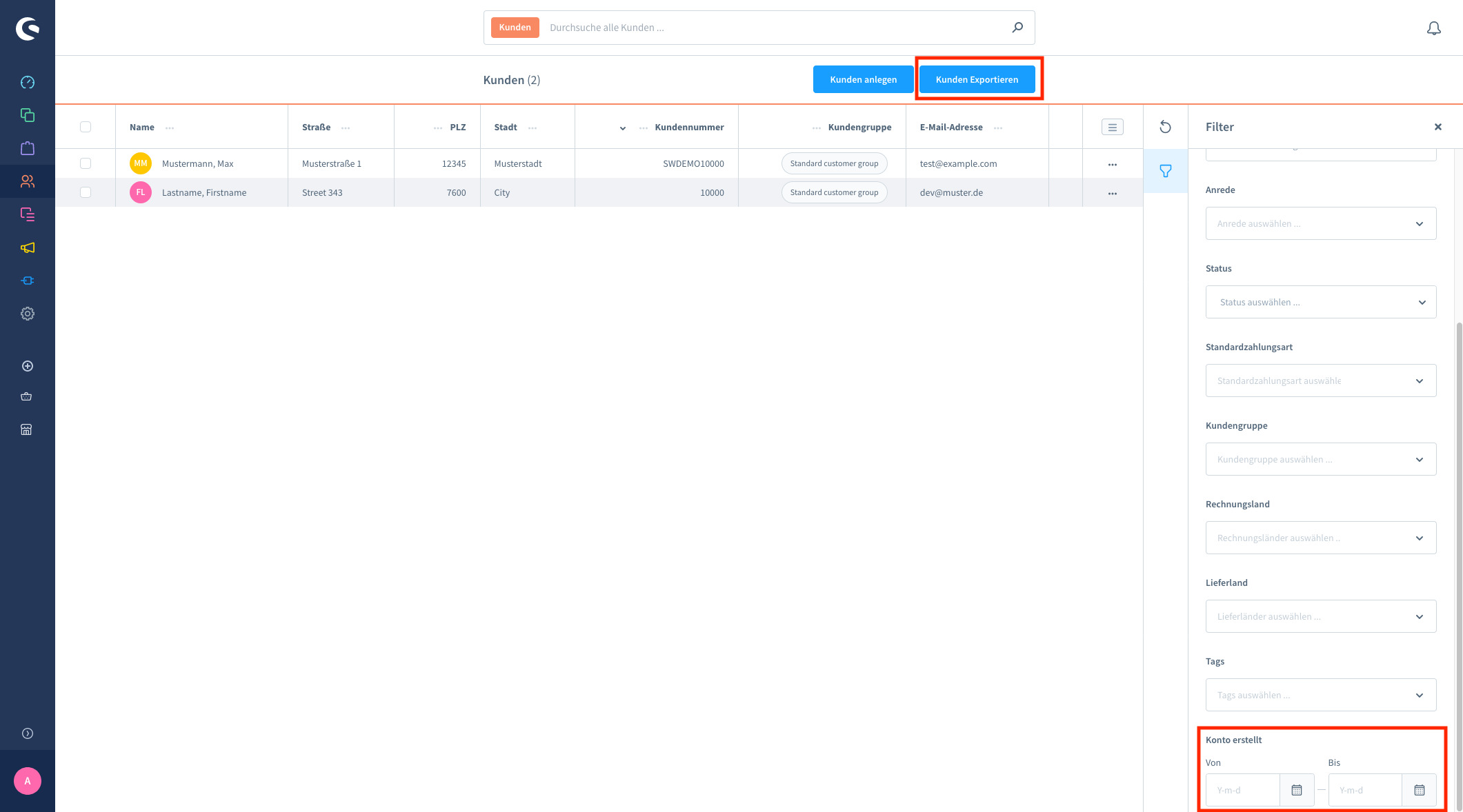 Mit dem CSV Exporter - Kunden Plug-In exportierst Du alle Deine Kunden. Einfach das Datum und die Bestellung auswählen um den CSV-Export zu erstellen. In der Konfiguration kannst Du die Kopfzeile sowie die Spalten (Inhalt) individuell nach Deinen Bedürfnissen anpassen.