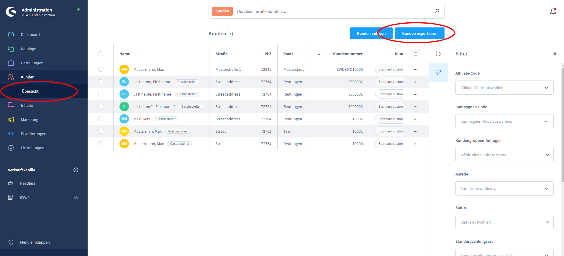Kunden exportieren