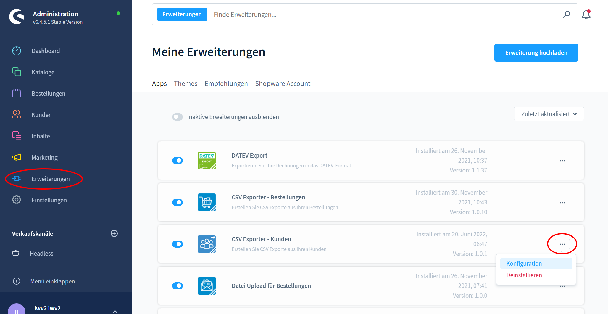 Klicke auf die drei Punkte und anschließend auf Konfiguration
