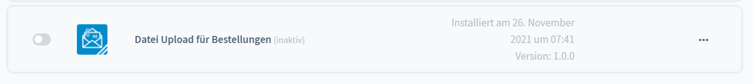 Tätige den Regler in Erweiterungen -> Meine Erweiterungen um das Plugin "Datei Upload für Bestellungen" zu aktivieren.