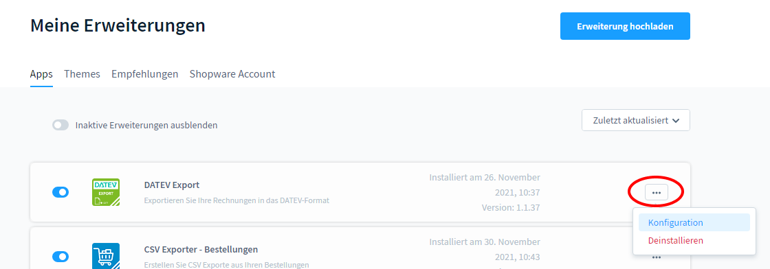Klicke auf die drei Punkte und anschließend auf Konfiguration