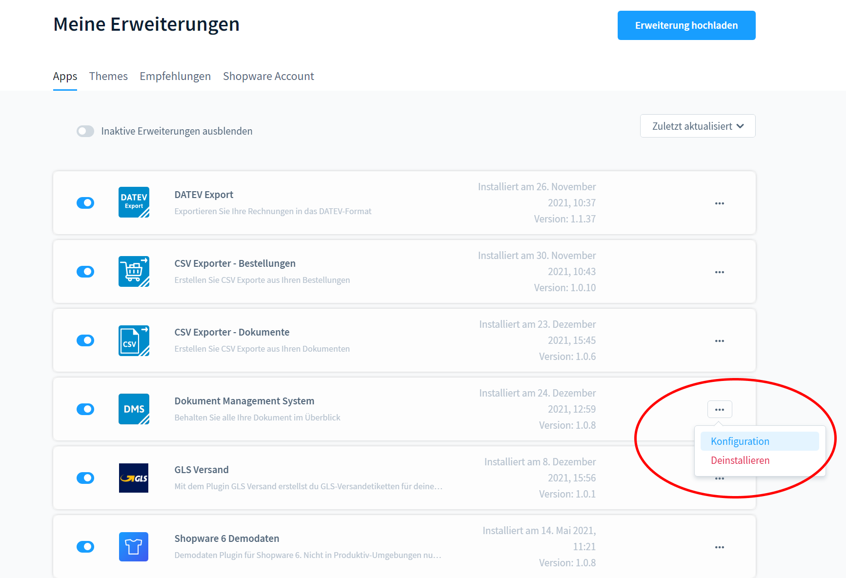 Über den Plugin Manager kann auch die Konfiguration des Plugin geöffnet werden.