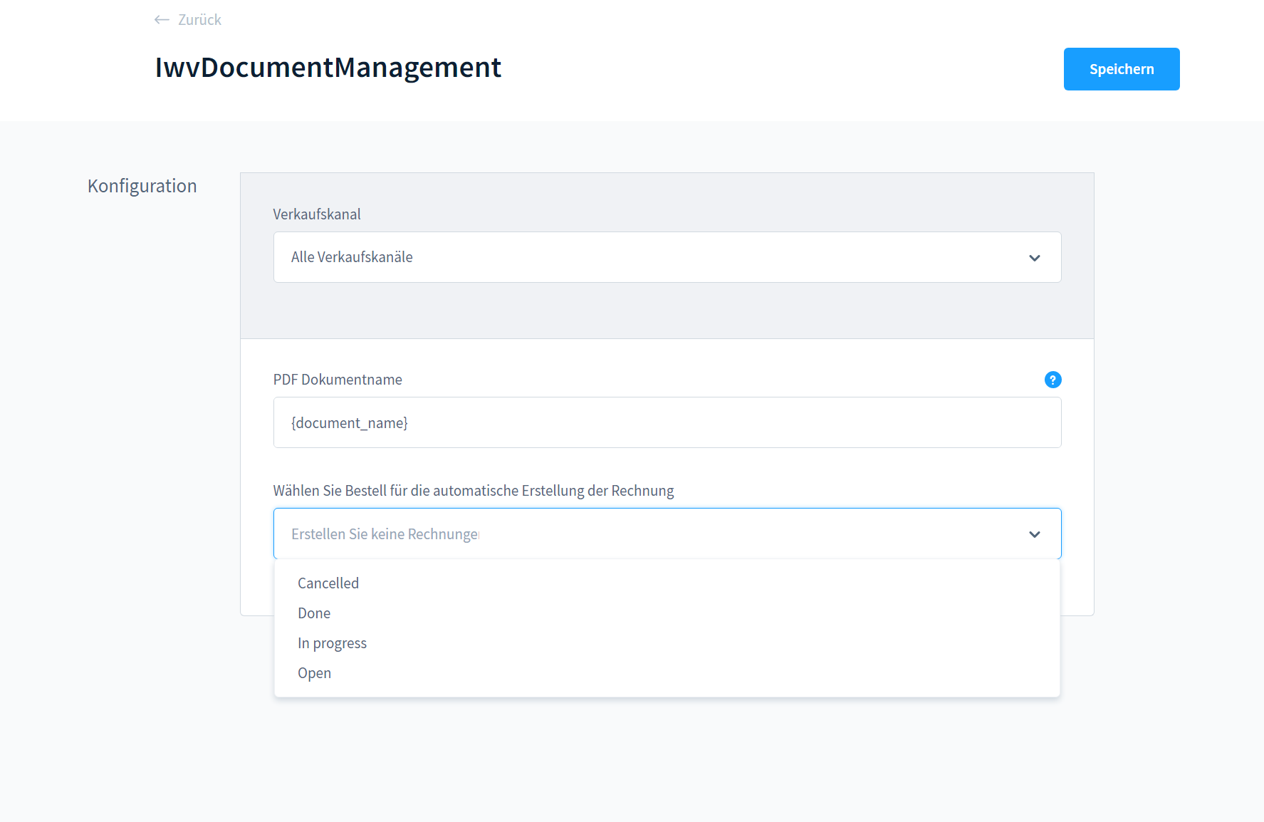 Hier kannst Du den Dokumentennamen festlegen sowie die automatische Rechnungserstellung einstellen.